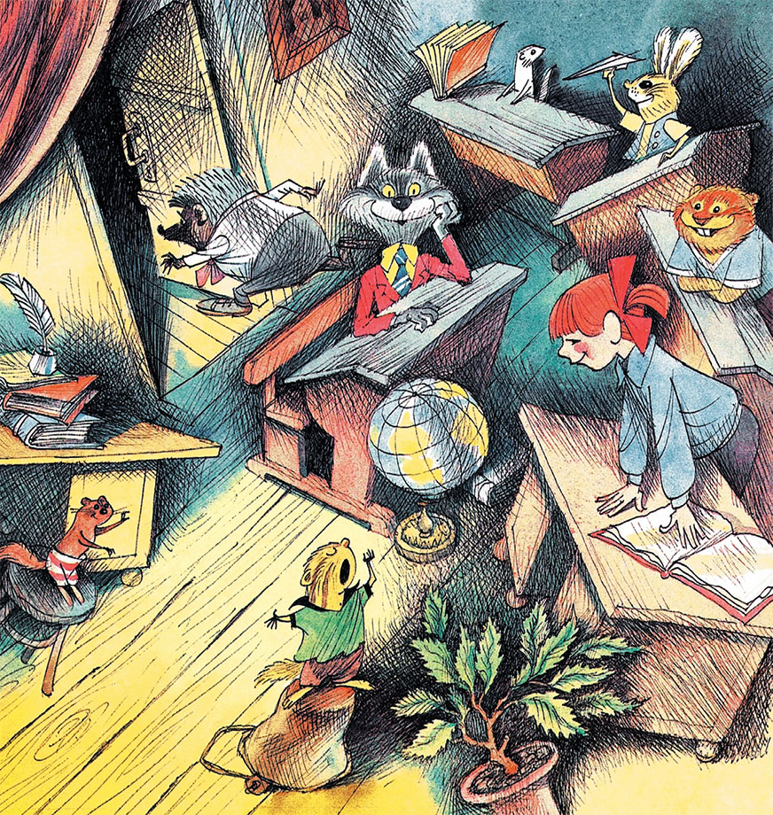 Меховая мелкота и крупнота уже была за партами. Все встали на передние лапы и от радости замахали задними.
