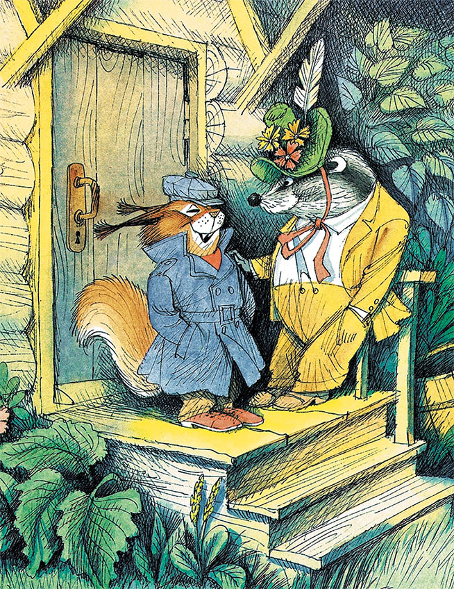 – Здесь! Здесь! – волновалась белочка. – Он в печке сидит.