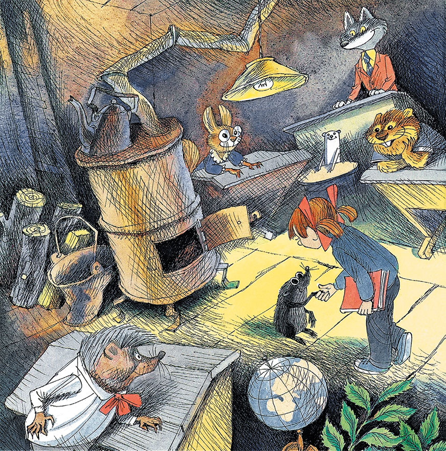 Всеволод Бобров взял очки и засунул их в печку. Дверца распахнулась, и оттуда торжественно выбрался наружу упитанный кротёнок. Чёрный-пречёрный, и вдобавок весь в саже.