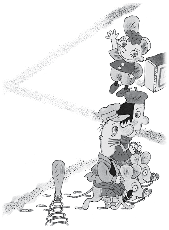 И тут белого мышонка осенило. Он открыл багажник автомобиля и вынул стеклянный наконечник от пипетки. Для кого-то это был наконечник, а для мышонка – горн-труба. Он поднял голову и затрубил: та-та-та-та! Та-та-та-та!