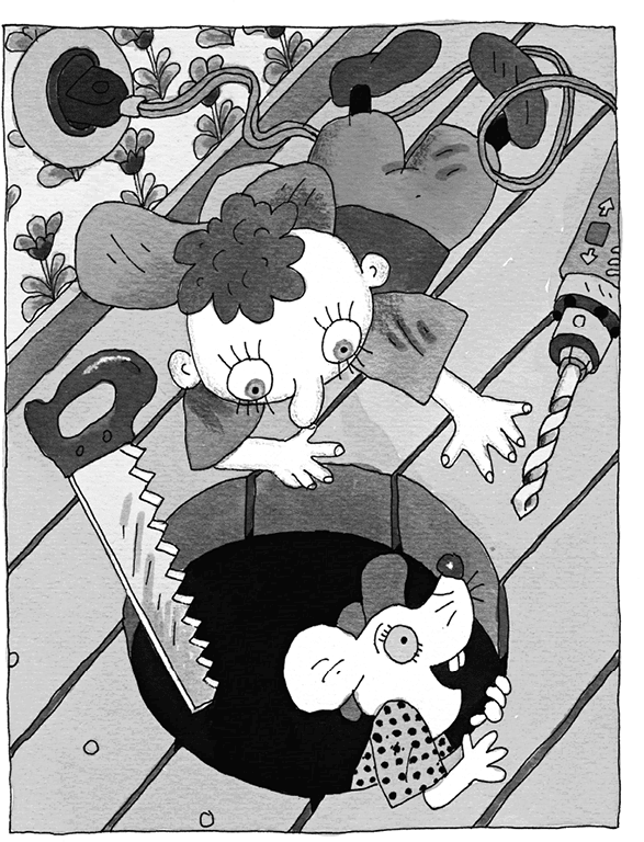 Ж-ж-жжжжжж! – жужжала электрическая дрель в руках мальчика. Он сделал дырочки в полу. А потом маленькой пилкой пропиливал дорожку от дырочки к дырочке. Через некоторое время люк был готов. Мальчик отвернул выпиленный круг и лёг на пол, чтобы посмотреть вниз. И тут из дыры показались беленькие усики, и наружу выбрался мотор королевского автомобиля – мышонок Вася.