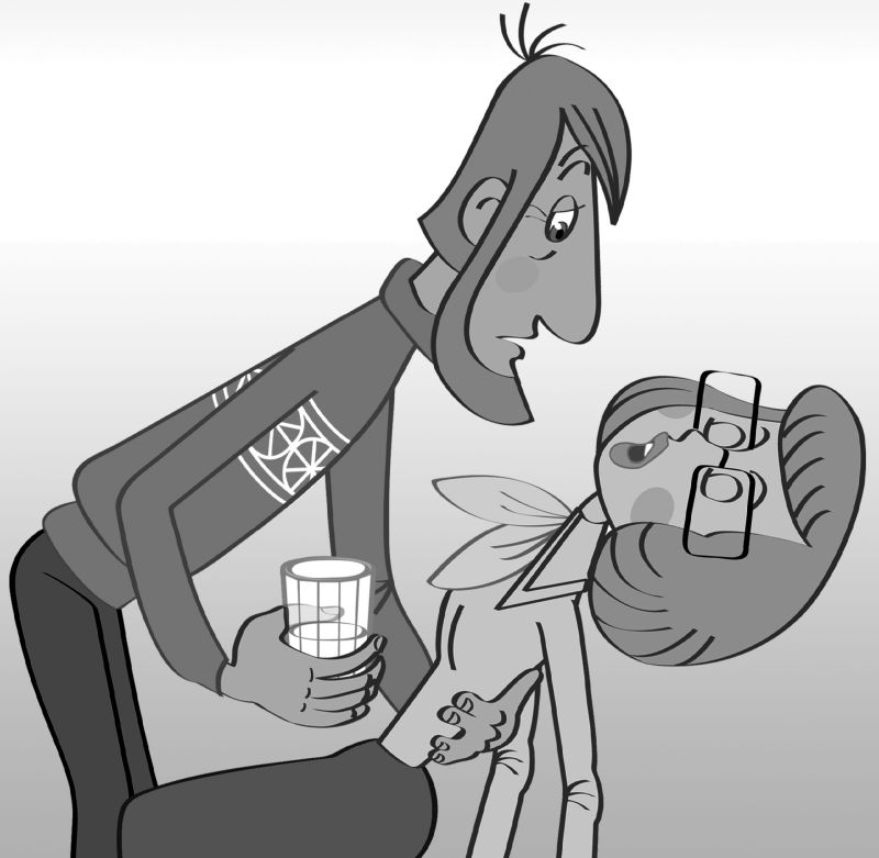 Тут грохот в комнате раздался. Это папа в обморок упал. Теперь мама за водой побежала папу в чувство приводить.