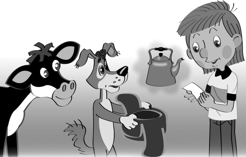 – Одно дело пароход, а другое – телёнок! – говорит дядя Фёдор. – Не каждому понравится, когда в честь тебя телят называют. Давайте мы вот как сделаем. Пусть каждый имя придумает и на бумажке напишет. Какую бумажку мы из шапки вытащим, так телёнка и назовём.