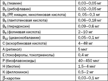 Примечание к таблице: 1 мг (миллиграмм) равен 1000 мкг (микрограммов).