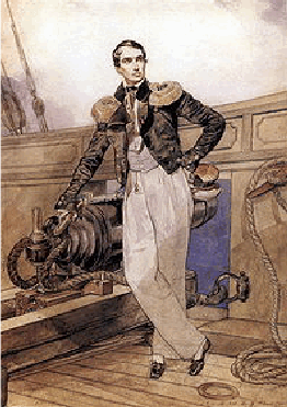 Ранний портрет Корнилова. Он капитан брига «Фемистокл». Элегантно расслабленная поза, «байроновский» платок, небрежно обвязанный вокруг шеи. Нахимова представить таким просто невозможно. Карьера Корнилова была столь стремительна, что он обошел многих, в том числе и старшего возрастом Нахимова.