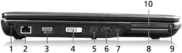 7. IEEE 1394 порт (устройство, предназначенное для обмена цифровой информацией между компьютером и другими электронными устройствами, через такой вход к ноутбуку подключается фотоаппарат, телефон и т. д.).
