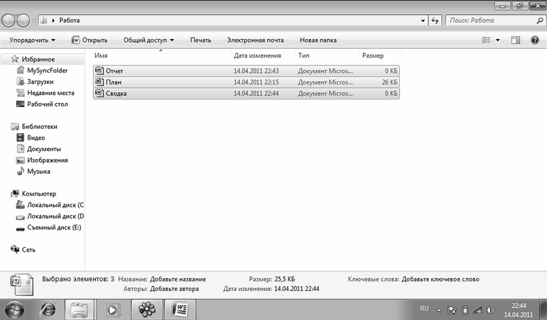 Перед вами появится точно такая же папка Работа, содержащая в себе файл План. Аналогичным образом можно копировать любые файлы.