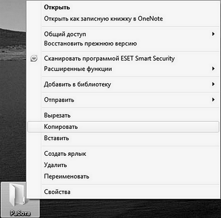 1. Наведите на вашу папку (напоминаем, у нас это Работа) курсор мышки и нажмите правую кнопку.