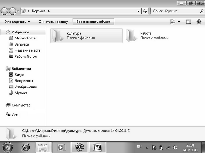1. Щелкните на иконку Корзина (она, как вы помните, находится на Рабочем столе) два раза.
