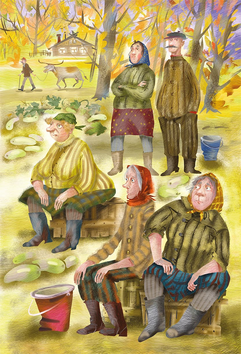 Появился бригадир Шкатулкин и ахнул! Батюшки, да они треть поля собрали! Надо бы председателю доложить. Но он не пошёл, потому что от него пивом пахло.