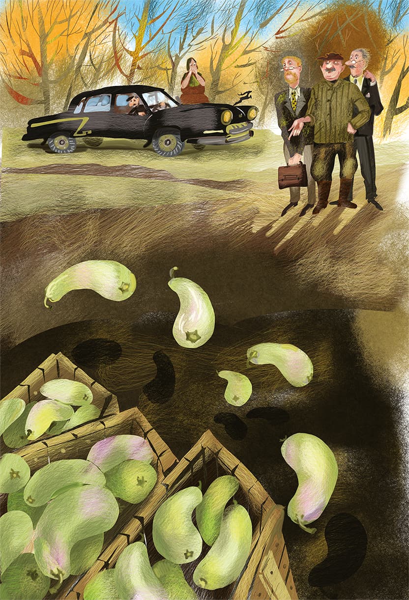 Теперь две бригады медленно двигались по полю. А кабачки летали над ними, как стая чаек над рыбацкой лодкой.