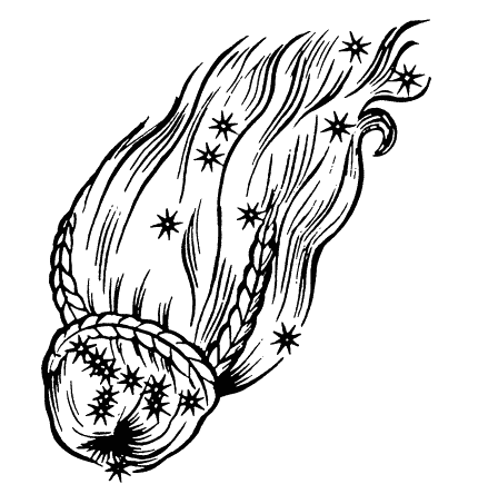 Кроме планет вокруг Солнца движется огромный рой не таких больших космических тел – астероидов. Расположены они главным образом между Марсом и Юпитером. А ещё вокруг Солнца мчится множество комет.