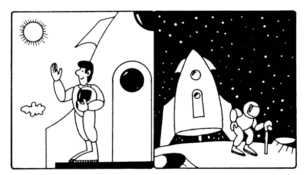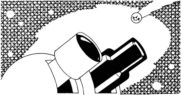 Попробуем вообразить себе масштабы Вселенной, взяв для начала размер, привычный для нас: высоту потолка в 4 метра. Умножим её на десять тысяч и выйдем при этом в стратосферу (40 километров). Сделаем следующий шаг: умножим ещё на десять тысяч и попадём на Луну (400 000 километров), а умножив ещё на десять тысяч, мы попадём на границу Солнечной системы, удалённую на 4 миллиарда километров, то есть на расстояние, которое свет пройдёт примерно за 4 часа. Этого предела уже достигали автоматические станции, посланные с Земли.