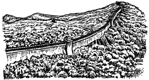 Великая стена, или, как её называют китайцы, Длинная стена, протянулась через весь Северный Китай на 4 тысячи километров. Её начали строить в IV–III веках до нашей эры, когда отдельные китайские государства вынуждены были обороняться от набегов кочевников Центральной Азии. Все работы на этом гигантском строительстве были завершены в III веке. Западная часть Великой стены сохранилась в первоначальном виде и в наши дни. Восточная – разрушилась и местами превратилась в земляной вал. Ширина стены у основания – 9 метров, наверху – 6 метров, высота – 10 метров. Примерно через каждые 200 метров на стене стоят четырёхугольные сторожевые башни с отверстиями-амбразурами. Наверху по стене проходит вымощенная плитами дорога. Когда-то по ней могли быстро передвигаться воинские части и обозы. В наши дни некоторые участки этой дороги покрыты асфальтом, и по Великой стене ездят автомобили.