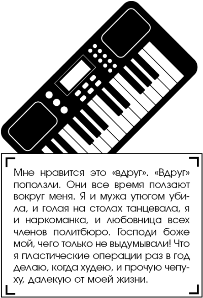 Алла за компанию с Шуфутинским прогуливала занятия, и они шли в кафе или в кино. А иногда вместе еще с несколькими приятелями спускались в подвал училища и устраивали там «концерт» – ребята играли, а Алла пела, причем в такой ультрасовременной, несоветской манере, что когда ее пение случайно услышал кто-то из руководства училища, ее чуть не отчислили.