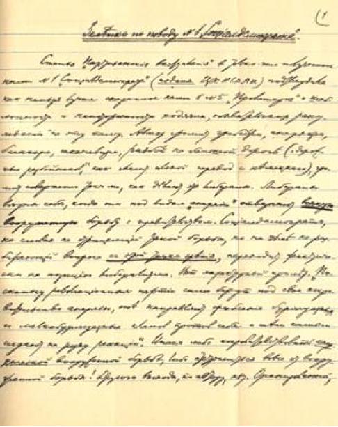 Первая страница рукописи В. И. Ленина «Заметки по поводу № 1 «Социал-Демократа»». – 1906 г. (Уменьшено)