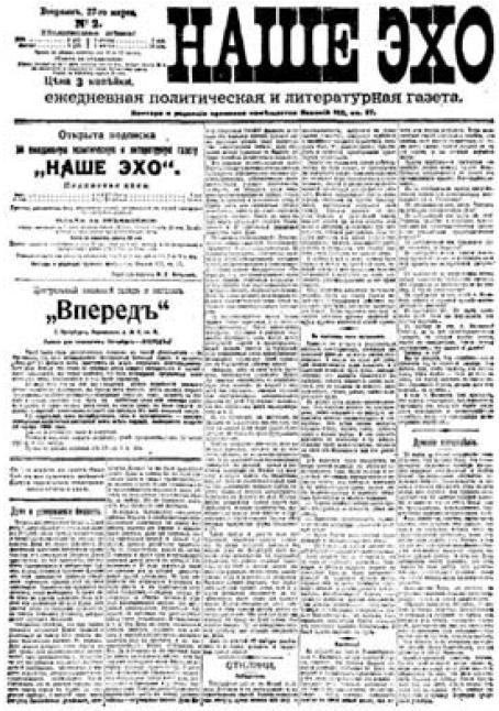 Напечатано 29 марта 1907 г. в газете «Наше Эхо» № 4