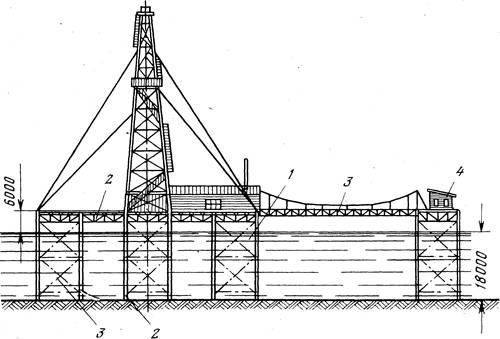 Рис.1.15. Схема буровой установки на море при крупноблочных основаниях: