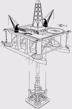 Самое современное поколение морских платформ – полупогружные. Это гигантские понтоны с вертикальными стабилизационными колоннами, остойчивость которых регулируют заполнением балластных емкостей в горизонтальных погружных поплавках. Осадка платформы в рабочем состоянии составляет 15–25 м. На рис.1.16.а показан внешний вид первого поколения полупогружных платформ, на рис. 1.16.б – вид современной платформы с улучшенными навигационными характеристиками. Полупогружные платформы используют для бурения скважин при глубине вод, не доступной для стационарных и самоподъемных буровых оснований. В 2000 г. эта глубина составляла уже 1100 м, а двумя десятилетиями раньше – всего 500 м.