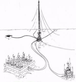 Рис. 1.17. Схема подводного заканчивания скважин (Мексиканский залив):