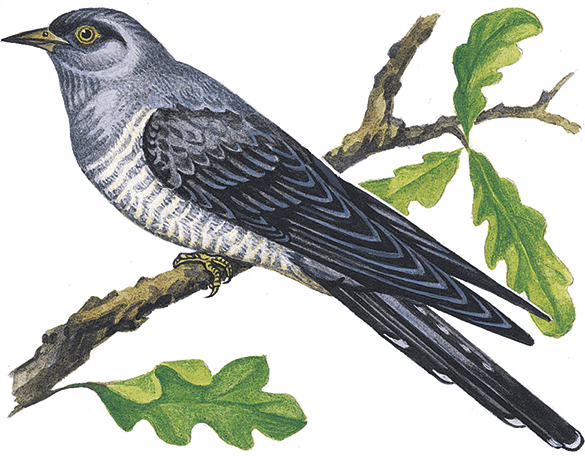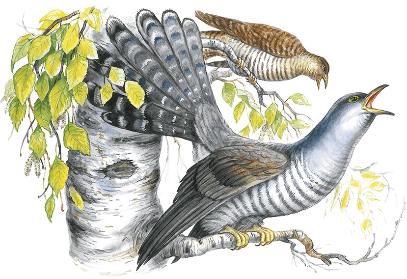 Гляжу: через поляну летит какая-то птица, хвост длинный, сама серая, только грудка в тёмных пестринках. Наверное, ястребёнок. Такой у нас во дворе за воробьями охотится. Подлетел к соседнему дереву, сел на сучок, пригнулся да как закричит: «Ку-ку, ку-ку!»
