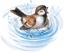 Кончат воробьи драку и летят искупаться в ближайшей луже. Такую кутерьму поднимут, только брызги летят! Купаются, а сами покрикивают: «Чив-чив-чив!..» Издали послушаешь, будто они друг другу кричат: «Жив-жив-жив!..» – радуются, что весна наступила.