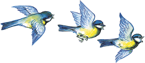 В саду с ветки на ветку перелетает небольшая шустрая птичка, ростом поменьше воробья. Спинка у неё серая, грудка жёлтая, на головке чёрная бархатная шапочка. Это птица-синица. В сад она за добычей прилетела: за жучками и за гусеницами.