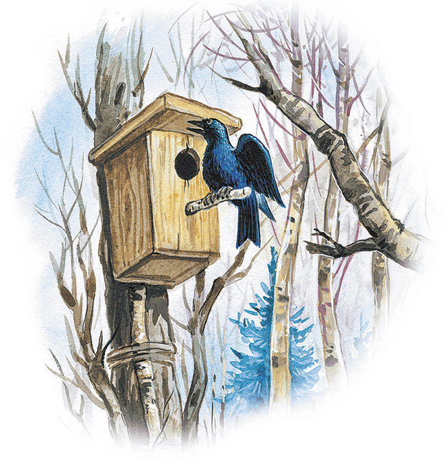 Март. Ещё снег не растаял, а на деревьях уже развешаны деревянные домики – скворечники. Вернутся скворцы весною с тёплого юга, погуляют денёк-другой в полях и лугах и разлетятся парочками по садам и огородам занимать приготовленные для них уютные квартирки.