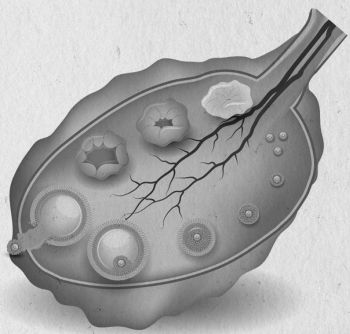 Яичники – парные органы, расположенные под маточными трубами и прикрепленные к матке и стенкам таза при помощи связок. Размеры яичников очень невелик: в среднем у взрослой женщины – 24 см, вес 6–7,5 г. Но значимость этих органов для организма женщины огромна. Яичники являются целой гормональной фабрикой. Именно в них вырабатывается основная часть женских половых гормонов, которые делают женщину женщиной. Яичники состоят из коркового и мозгового вещества. В корковом веществе заключено множество фолликулов. Фолликул представляет собой яйцеклетку (женскую половую клетку), окруженную оболочкой. На разных этапах развития репродуктивной системы фолликулы имеют различную структуру, обусловленную воздействием разнообразных гормонов. Яичники начинают активно функционировать в период полового созревания в возрасте 10–13 лет. В этот период под влиянием гормонов гипофиза фолликулы начинают расти и прекращают свою деятельность в возрасте менопаузы (50–55 лет). Если яичники не начинают своевременно работать, девочка никогда не станет женщиной, у нее не разовьются молочные железы, фигура не приобретет женственные очертания, не будет менструаций, а значит, и способности к деторождению.