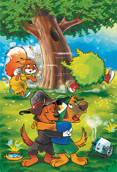 Промямлив: «Кажется, его нужно доработать», – Тюбик стал пятиться назад. Прихватив изобретение и упирающегося Арахиса, пёс шмыгнул за дерево. Братья скрылись в лесной чаще.