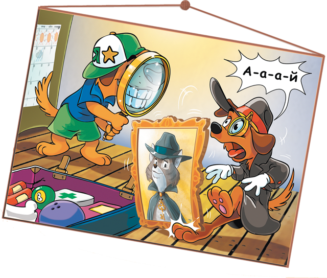 – Мамочки! – завизжал пёс и уронил свою ношу. Тяжёлый предмет полетел вниз острым углом. Взвизгнув, Тюбик ухватился за ушибленную лапу. Пёс начал в ужасе пятиться, когда со стыдом обнаружил, что это вовсе не ужасное чудовище, а его брат Арахис приложил лупу к раскрытой пасти.