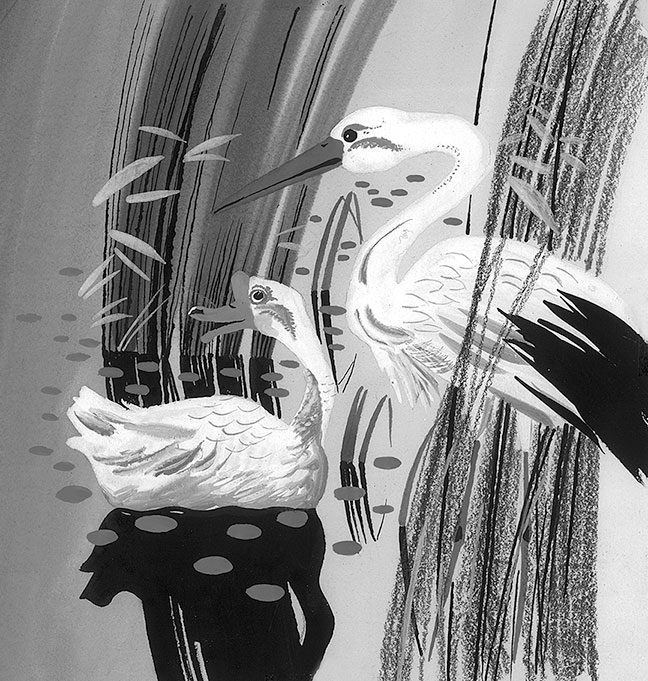 Плавает гусь по пруду и громко разговаривает сам с собою: «Какая я, право, удивительная птица! И хожу-то я по земле, и плаваю-то по воде, и летаю по воздуху: нет другой такой птицы на свете! Я всем птицам царь!»