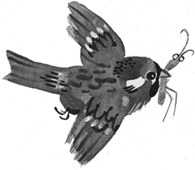 Эх, бескрылый человек,У тебя две ножки,Хоть и очень ты велик,Едят тебя мошки!А я маленький совсем,Зато сам мошек ем.