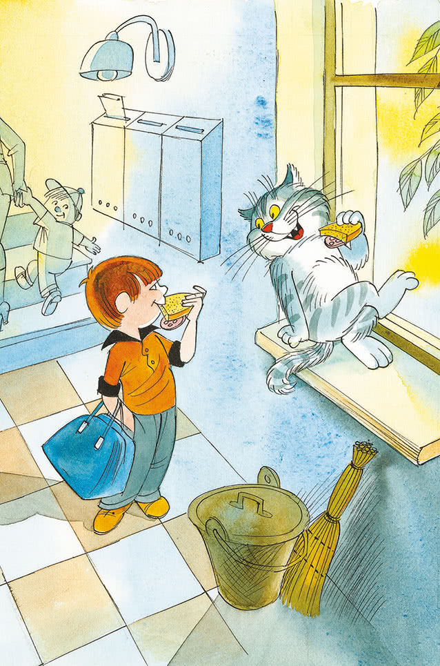 – Ну и что? – не соглашается папа. – И от кота будет польза. Мы его на собаку выучим. Будет у нас сторожевой кот. Будет дом охранять. Не лает, не кусает, а в дом не пускает.