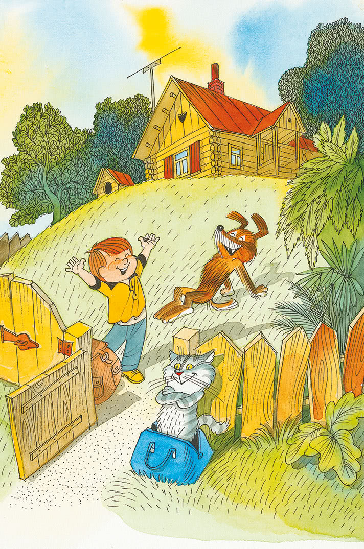 – А мне самому, – говорит дядя Фёдор, – велосипед нужен. Мне его в городе не разрешали заводить: там машин много. А здесь я могу кататься сколько хочешь. По деревне и по полям. Туда-сюда. Сюда-туда.
