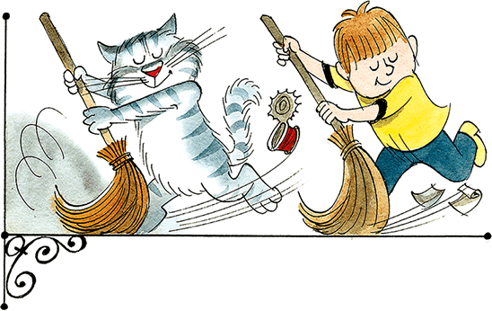 – Это точно, – поддерживает кот, – и характер тяжёлый, и веник тоже.