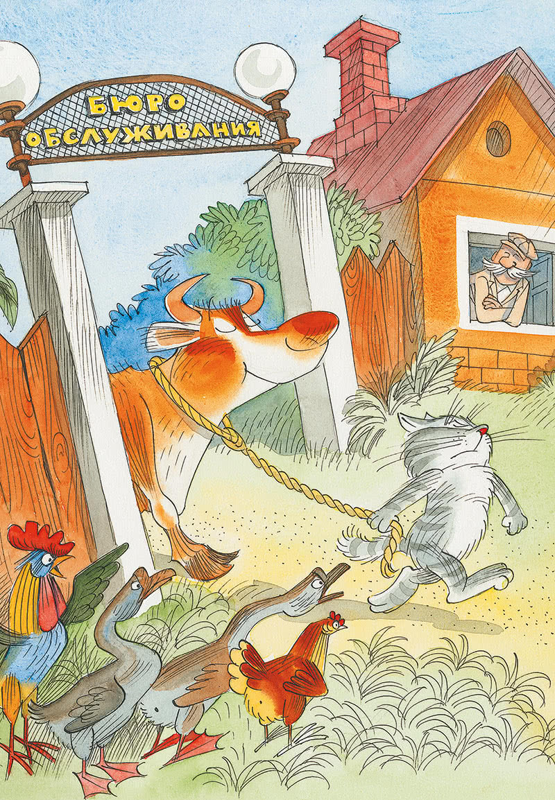 С уважением… дядя Фёдор (мальчик).А через некоторое время домой Матроскин является и корову на верёвочке ведёт. Он её напрокат взял в сельском бюро обслуживания. Ну просто профессор с рогами! Только очков не хватает. И кот тоже заважничал.