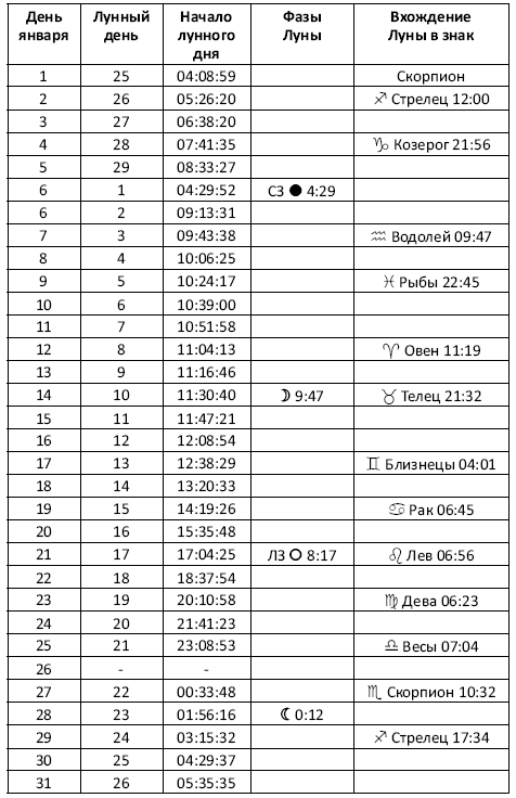 14 (с 21:32), 15, 16, 17 (до 04:01) января Луна в Тельце.