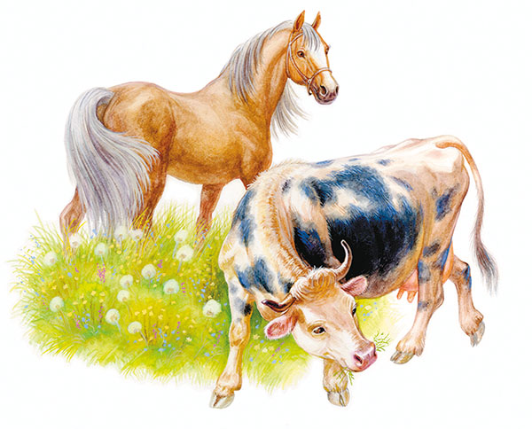 Корова, лошадь и собака заспорили между собою, кого из них хозяин больше любит.
