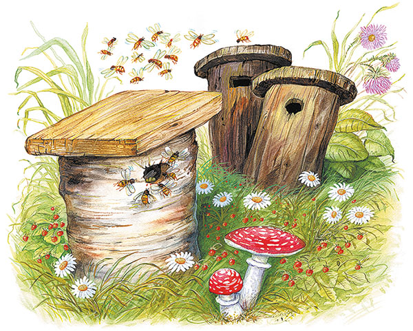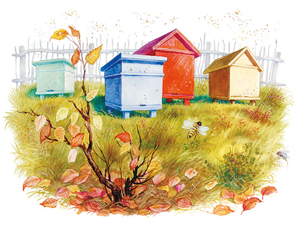 – Зум-зум-зум! Зачем же пропадать, – отвечали мухе весёлые пчёлки. – Мы повеселимся, пока светит солнышко; а как наступит непогода, спрячемся в свой тёплый улей, где у нас за лето много припасено мёду.