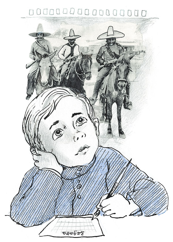 …Подперев ручонкой, измазанной в мелу и чернилах, свою буйную, мечтательную, отуманенную образами, голову – сидит Панталыкин Семён.