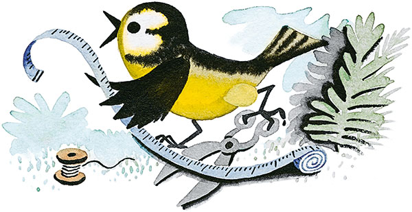 Стала терпеливая Синица из холстины фартук кроить. Тут прикинет, там смекнёт, сюда подвинет, туда подвернёт. Всё она сообразила. Всё высчитала, всё вычертила, потом за ножницы взялась. Хороший фартук получился. Ни одного лоскутка не пропало даром.