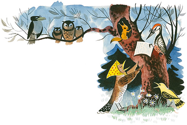 – Вон ты каков, неблагодарный! Из моего яйца проклюнулся, а меня и узнать не захотел, – сказала в сердцах Кукушка и полетела в желнино гнездо. Увидела там кукушонка и к нему бросилась: