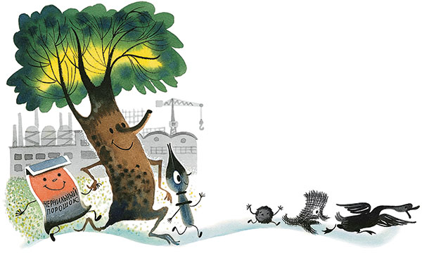 – Го-го-го! – гогочет Гусь. – Пойдём втроём народ припугнём. Пускай он нам славу поёт, почести воздаёт. А не то мы его перьев лишим, чернил не дадим, бумагу придержим. Незаменимые мы!
