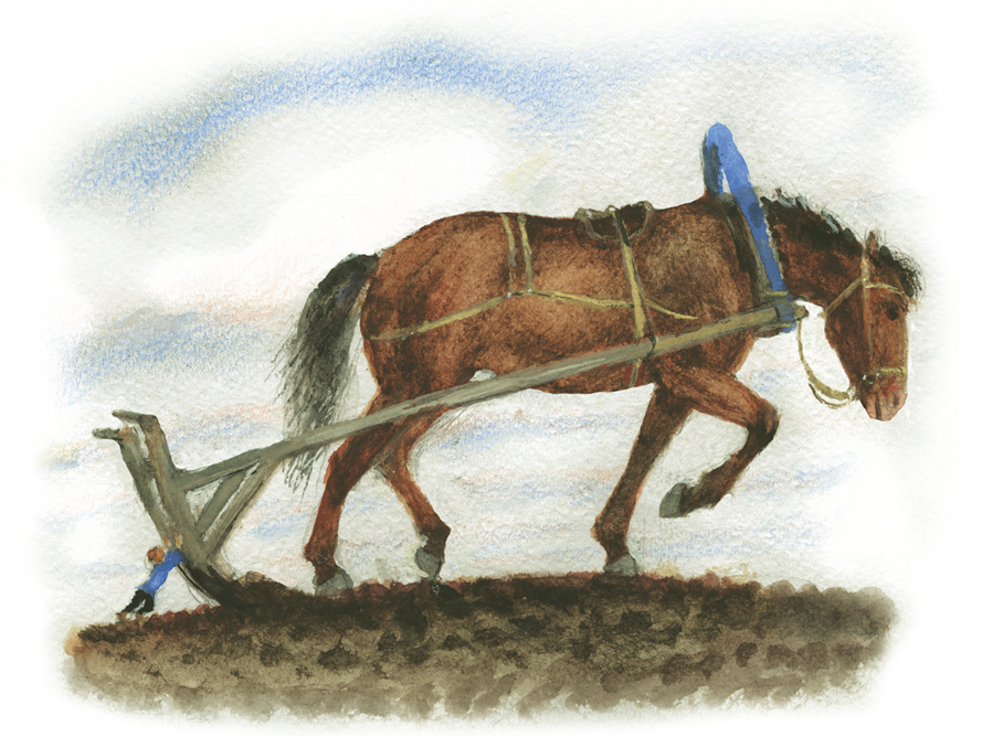 А Липунюшка взялся за соху и стал пахать. Сам пашет и сам песни поёт.