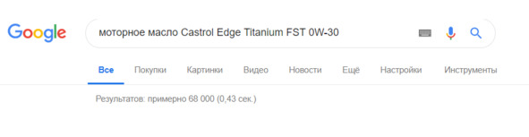 Как видно из скриншота «моторное масло Castrol Edge Titanium FST 0W-30», имеет мало запросов, и никаких дополнительных слов.