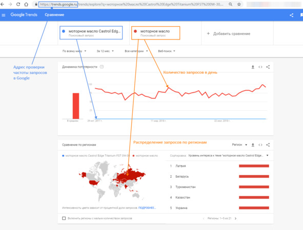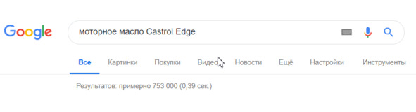 Поэтому, если требуются посетители из поисковика Гугл, то целесообразнее делать оптимизацию под запрос «моторное масло Castrol Edge».