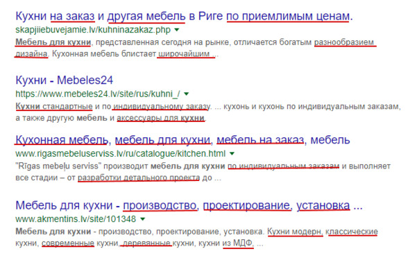 Алгоритмы Google набрали соответствующие фразы из уже высоко позиционируемых сайтов, и знает, что «мебель для спальни» имеет сопутствующие слова, которые раскрывают тему.