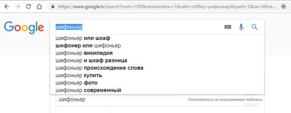 Например, по фразе «мебель для кухни» получается набор сопутствующих слов.