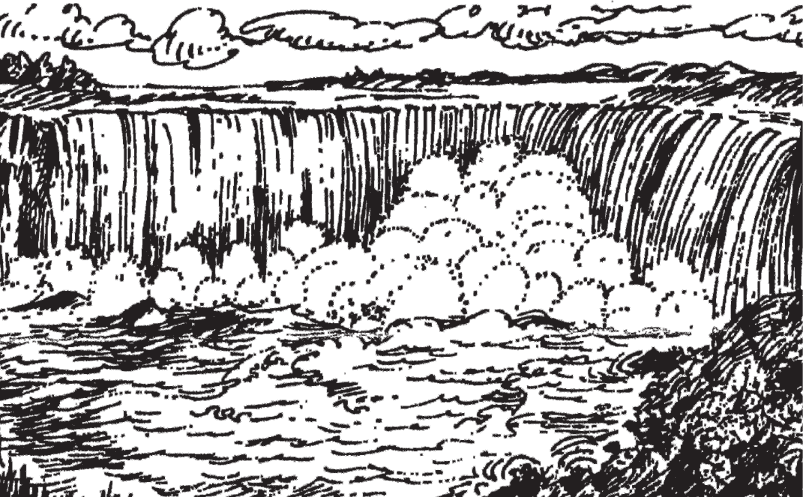 В своем течении река достигает утеса. Этот утес, покрытый толстым слоем известняка, и создал Ниагарский водопад. Затем падающая вода углубляла русло реки. И сейчас высота падения воды гораздо больше первоначальной.